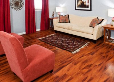 This 12mm classic brazilian koa laminate comes in a smooth finish with a lifetime residential warranty.